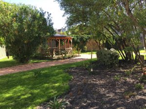 Le kiosque est un espace de détente à l’abris des intempéries ou du soleil et permet d’observer l’ensemble du jardin depuis ses bancs.