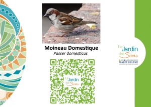 Grace à un QRCode édité sur des pancartes, les visiteurs peuvent télécharger les chants des oiseaux et ainsi tenter de reconnaître les différentes espèces présentes dans le jardin.